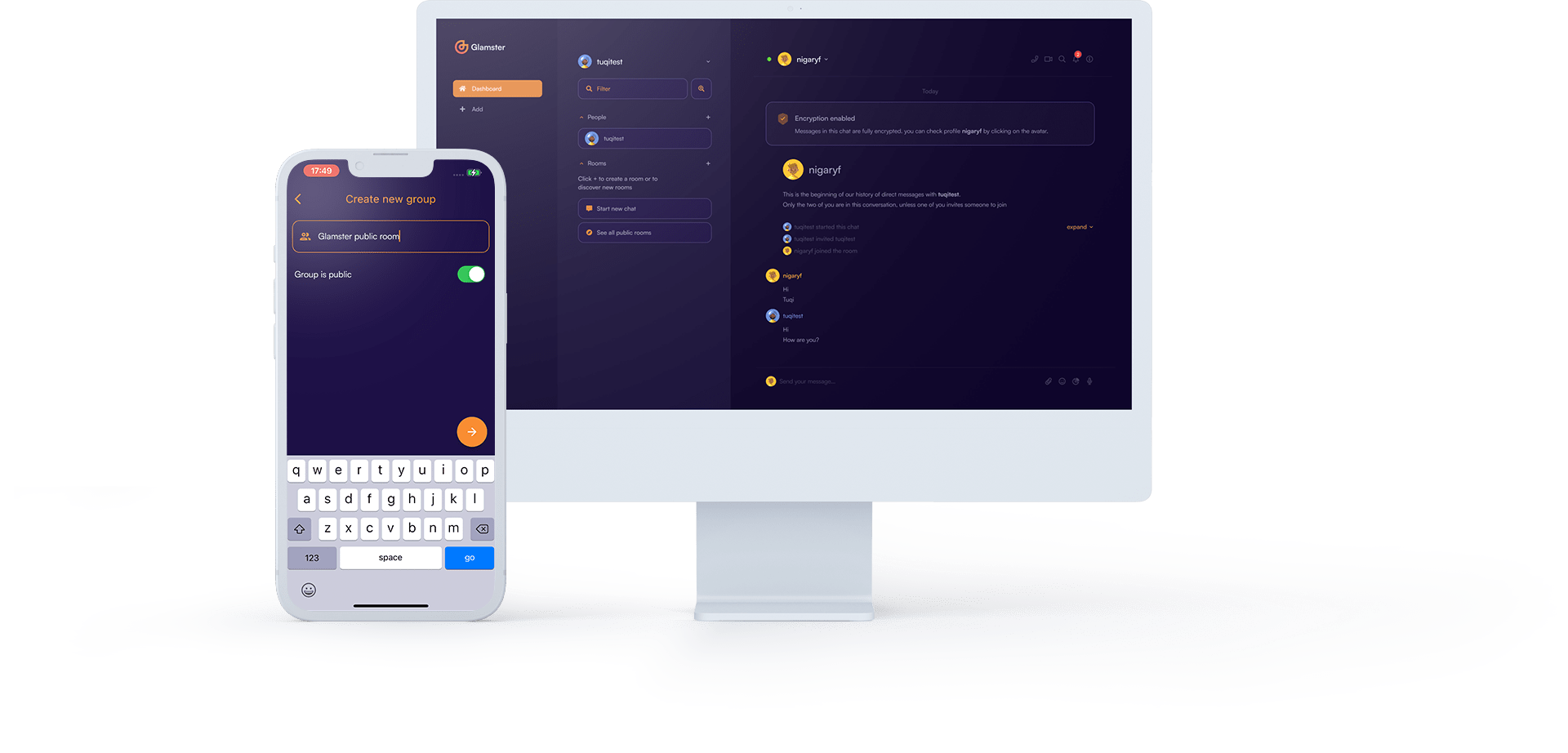Masaüstü ile Şifreleme Anahtarı Paylaşımı Mobil Glamster uygulamanızı Glamster masaüstü mesajlaşma uygulamasıyla sorunsuz bir şekilde eşleştirin.